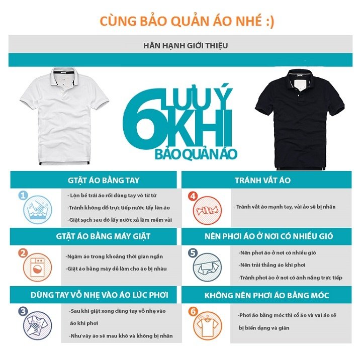 Không nên giặt áo thun bằng nước nóng quá 40 độ C và phơi tại những nơi khô thoáng, nên lộn trái áo thun để phơi tránh ánh nắng mặt trời trực tiếp. Nhiệt độ cao sẽ khiến áo nhạt màu, chất liệu vải khô cứng kém mềm mịn.
