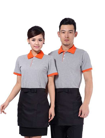 Đồng phục nhà hàng HKL405 với đường viền cổ áo và phần tay áo mang đến sự trẻ trung cho người mặc và làm tăng thêm sự khác biệt của nhà hàng.