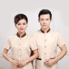 Đồng phục nhà hàng HKL406 với đường viền cổ áo và phần tay áo mang đến sự trẻ trung cho người mặc và làm tăng thêm sự khác biệt của nhà hàng.